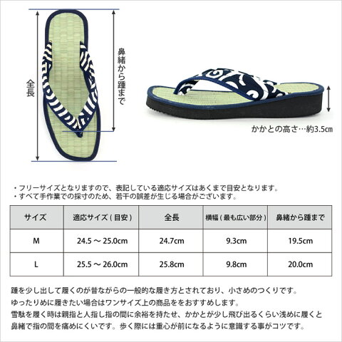 【サイズ選びのポイント】 雪駄は本来、かかとを少し出して履くのが一般的な履き方とされております。